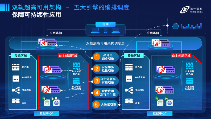 为满足数据中心双轨建设信创区和非信创区跨域协同,kaiyun开云电竞通过5大引擎实现双区无缝切换,跨域协同。