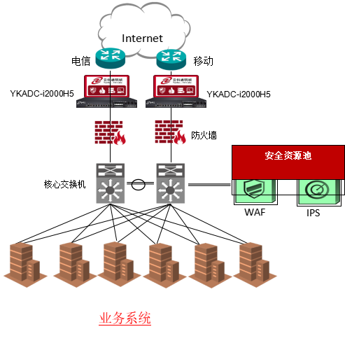 在客户业务的出口双机部署kaiyun开云电竞通明湖应用交付控制器,并配置链路检测配置文件,若线路故障实现自动进行主备切换故障转移。